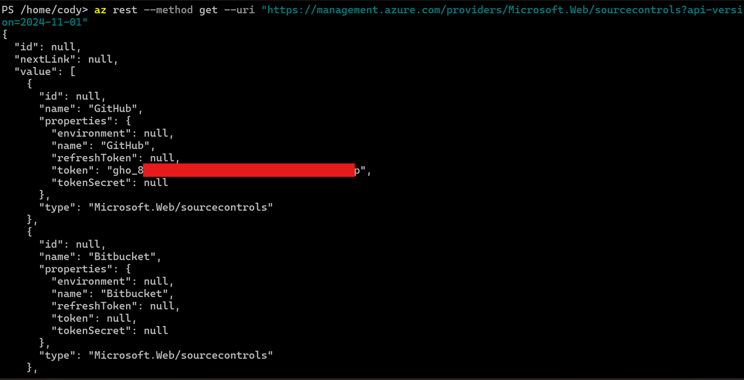 az rest --method get --uri "https://management.azure.com/providers/Microsoft.Web/sourcecontrols?api-version=2024-11-01"
