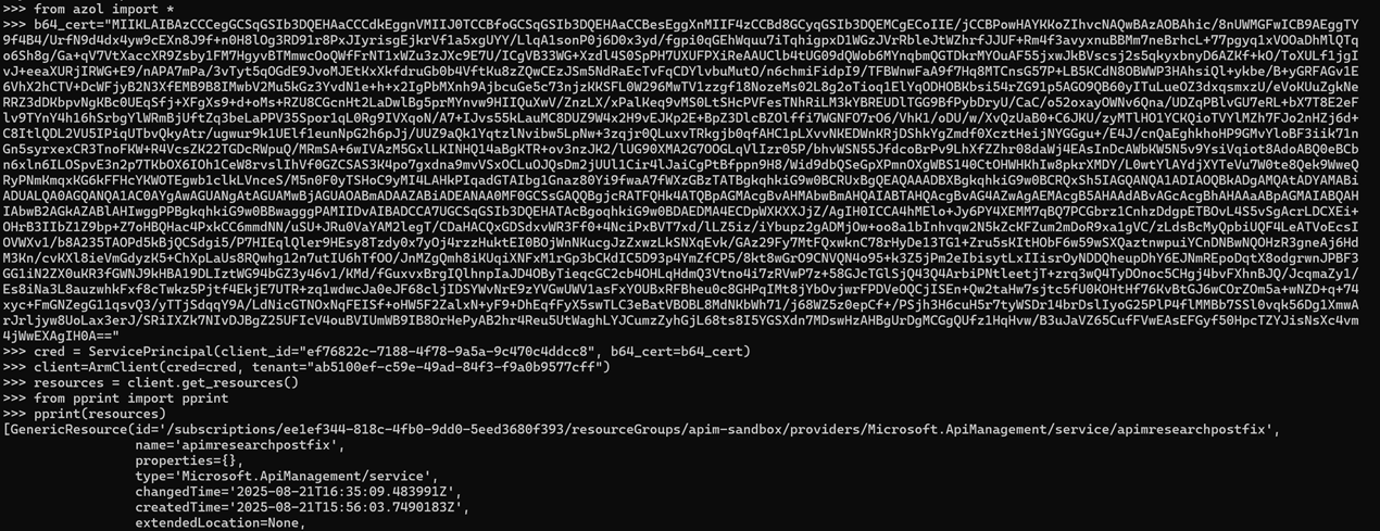 These are the base64 encoded certificates for all managed identities associated with the APIM service. It should never be possible to extract these certificates, so this is a vulnerability and was reported to Microsoft.