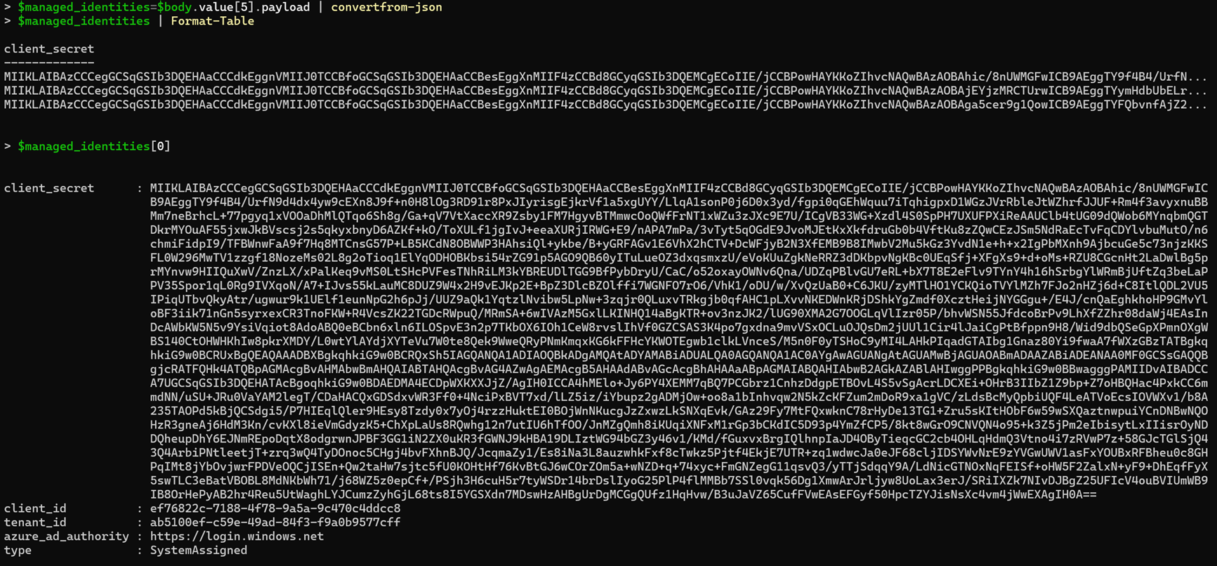 Karl Fossaen describes this quite well in his post about exporting managed identity certificates for Azure Functions. This finding has the same implications, as the impact of both findings is the exposure of managed identity certificates.